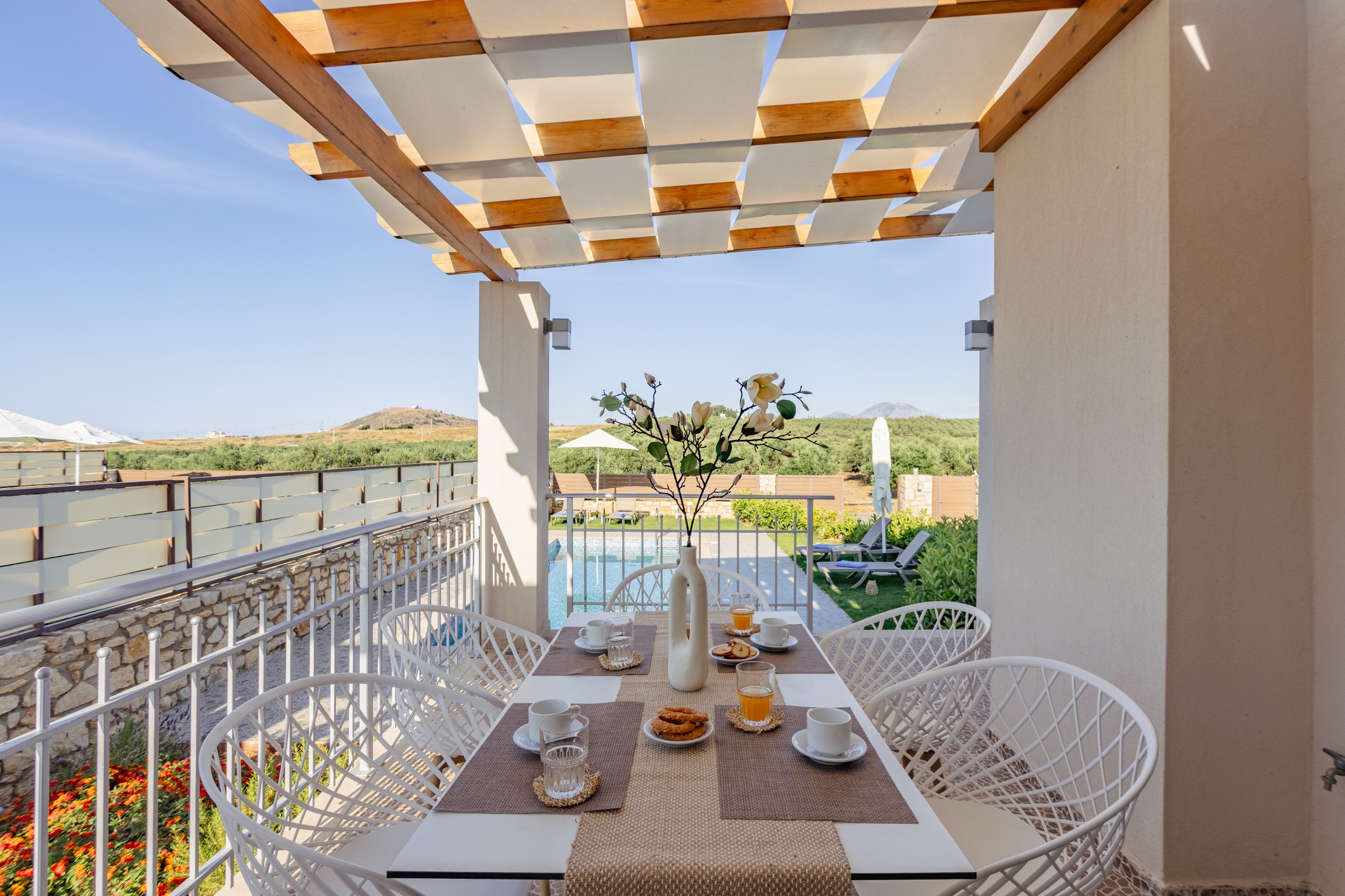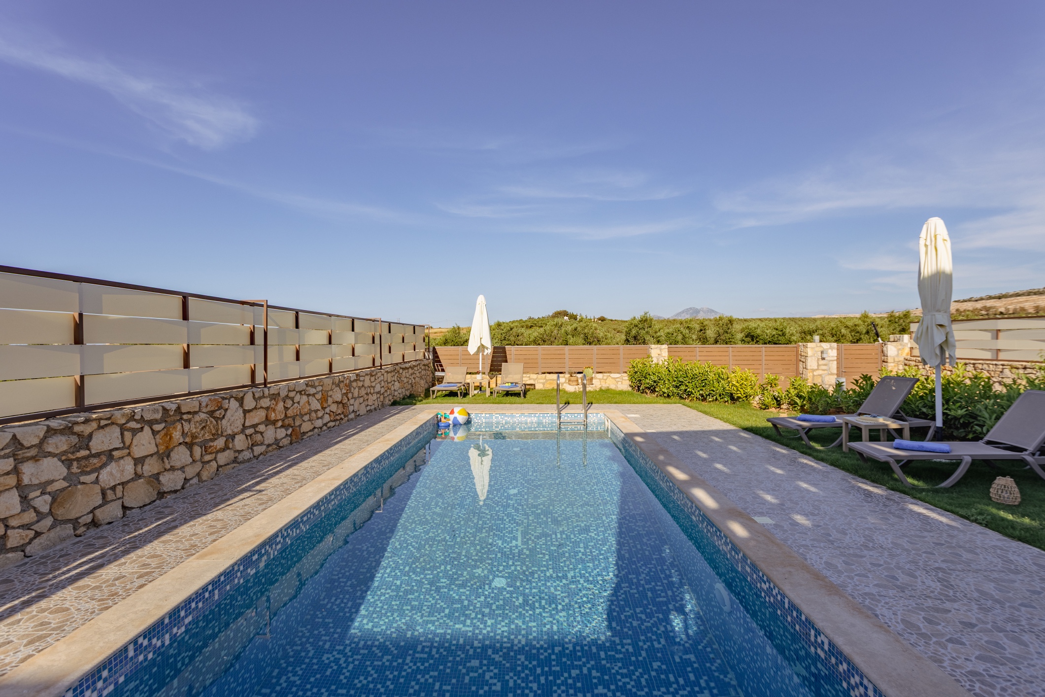 Draußen wird der private Swimmingpool von ELEA zum Mittelpunkt des täglichen Lebens. Vor der Kulisse von Olivenhainen und dem fernen Meer bietet er einen idyllischen Rückzugsort für sonnenverwöhnte Nachmittage oder ruhige Abende, wenn der Himmel in Gold- und Rosatöne übergeht. Da das Meer weniger als einen Kilometer entfernt ist, ist das Leben an der Küste immer mühelos zu erreichen.