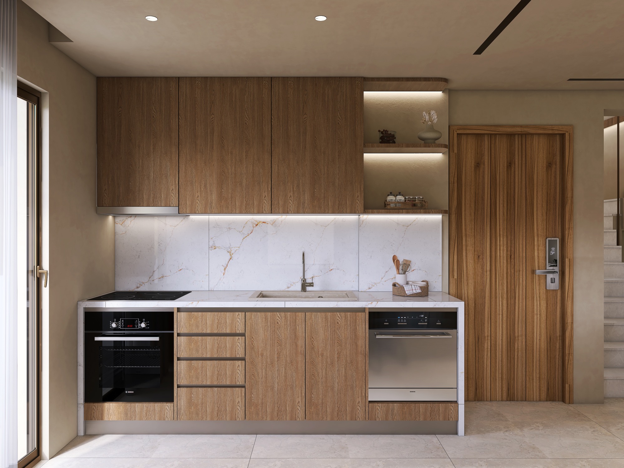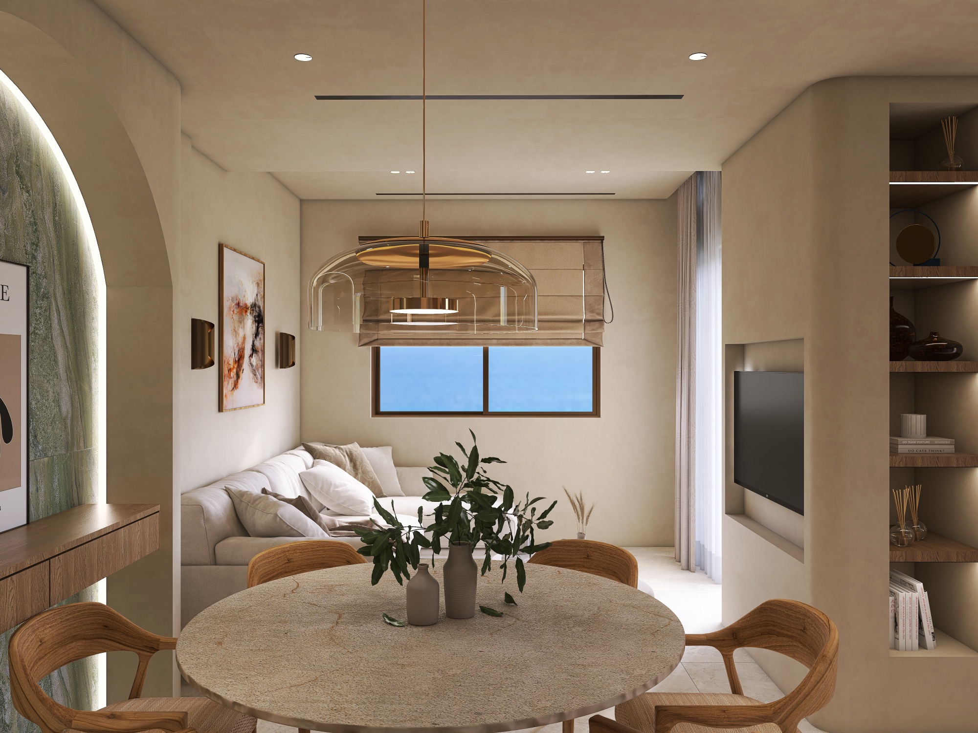 Spread across three levels with a total area of 116 sq.m., the residence combines bright, open-plan living and dining spaces with three bedrooms and two elegant bathrooms.